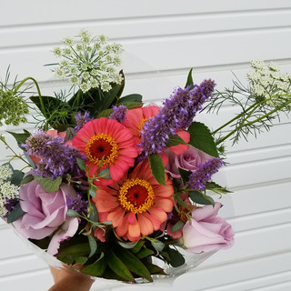 We strive to grow unique and unusual varieties of flowers that are often not available in retail stores. And we love to incorporate seasonal blooms and foliage that bring nostalgia and fragrance to a bouquet. We use sustainable growing practices and do not apply chemical sprays so it's safe to put our bouquets on your kitchen table or put your face in them to smell their sweet, fresh fragrance.